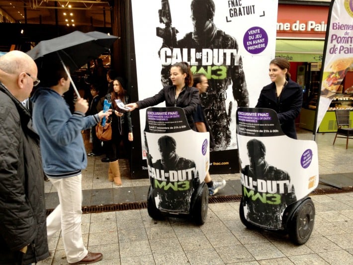 Le street marketing connaît un succès en matière de lancement de produits. De plus en plus de sociétés sont adeptes d’une solution incluant des gyropodes Segway (de petits véhicules électriques monoplaces avec deux roues parallèles.) Ils sont de plus en plus utilisé par les entreprises pour optimiser la visibilité d’un produit grâce à de nombreux options de customisation publicitaires.
