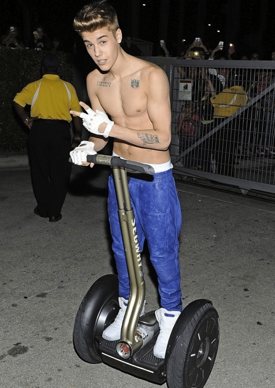 Justin Bieber fait partie des célébrités devenues fans du gyropode Segway. En effet on ne compte plus les fois où on l’a vu piloter ce véhicule électrique ! De nombreux clichés du jeune homme sur un gyropode ont déjà été publiés sur la toile. La star utilise ce véhicule durant ses nombreux concerts, que ce soit pour se déplacer dans les coulisses ou bien au beau milieu des fans déchainés.