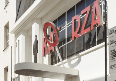 Un lieu mythique de la ville et du Voyage à Nantes : le cinéma Katorza. La lettre « O » de l’enseigne de ce cinéma chute tous les quarts d’heures de 8h à 00h.