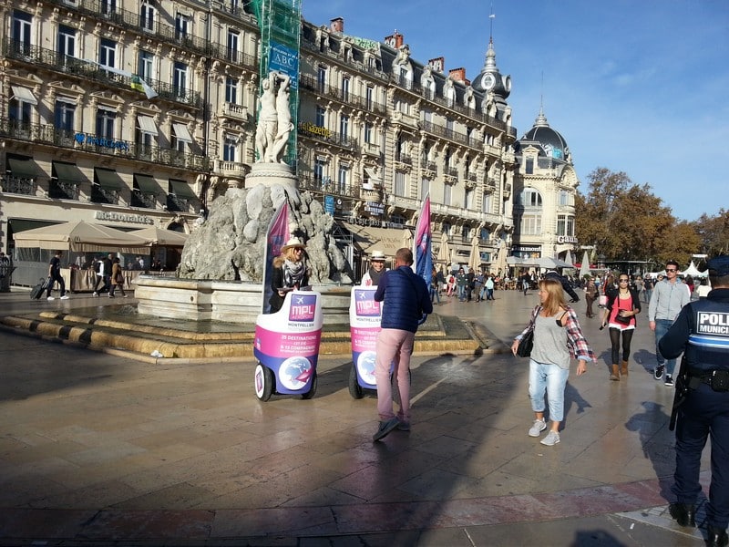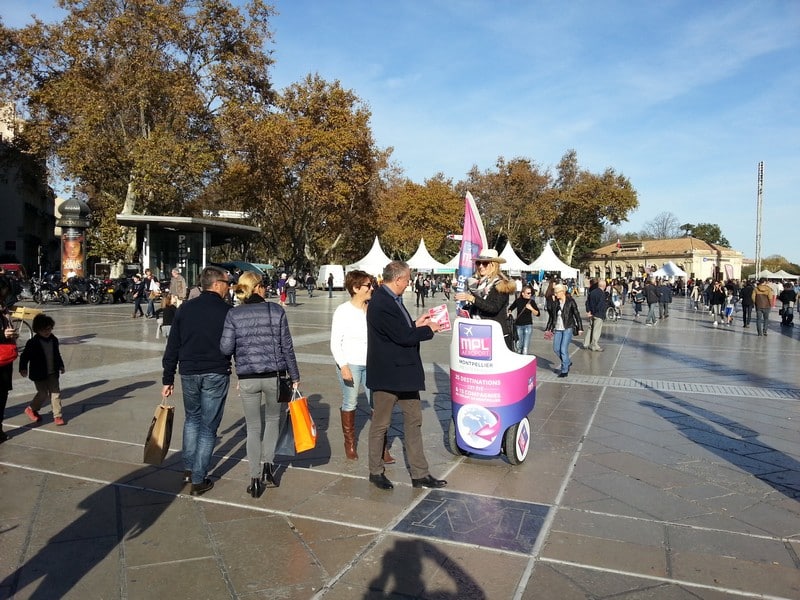 Mobilboard Montpellier est spécialiste de campagnes de communication terrain dans la région Languedoc Roussillon. Cet automne, l’agence a réalisé deux belles opérations de Street-Marketing pour l’aéroport de Montpellier Méditerranée. Au programme : affichage mobile, distribution de propectus, interactivité avec la cible et promotion d’un jeu concours facebook.