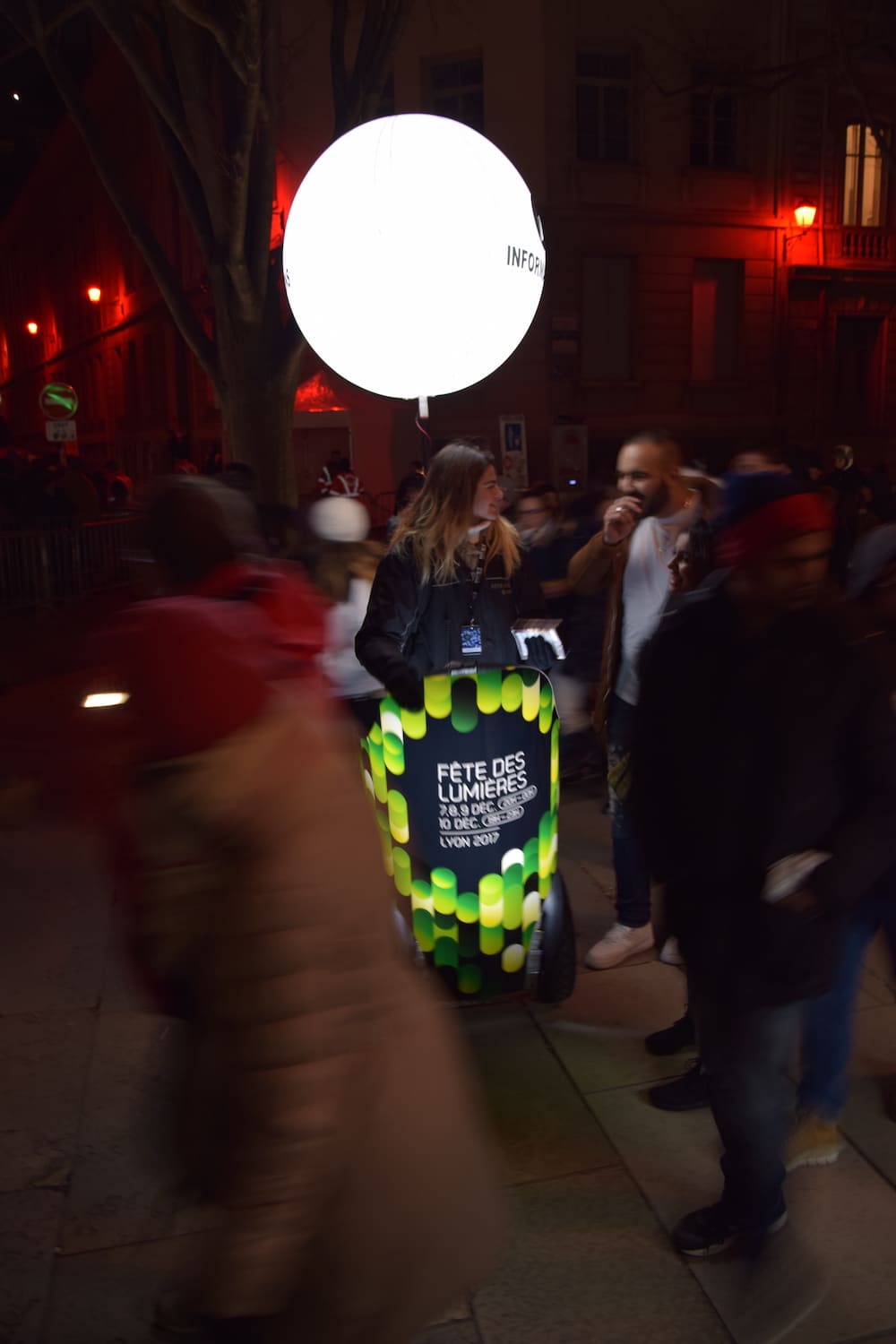 Vous avez sans doute déjà croisé nos gyropodes mobilisés pour l’orientation du public lors de la Fête des Lumière ? Et pourquoi pas créer l’événement avec une opération de nuit ? On sait qu’avec l’heure d’hiver, la nuit arrive très vite et pour rendre votre marque visible à l’heure de sortie des métros et des bureaux, des Segway lumineux peuvent vraiment faire la différence !