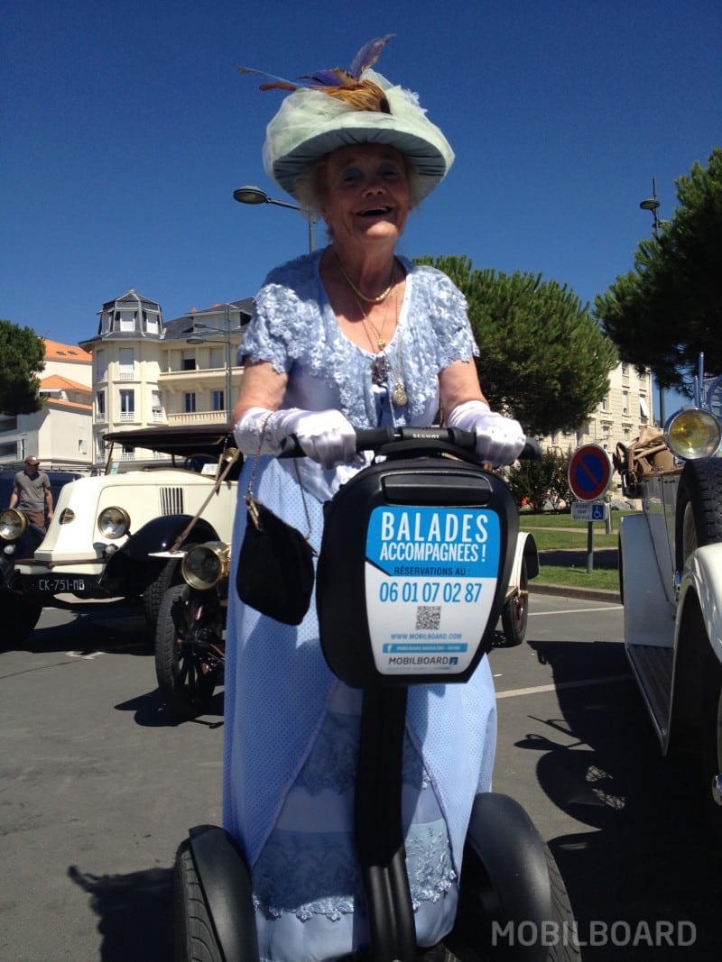 Ensuite, retour vers le futur ! En effet, les Segway ont remonté le temps jusque dans les années 1900 pour balader les charmantes bourgeoises de la belle époque ! Ici, c’est Thérèse, 85 ans, qui s’est prise au jeu.