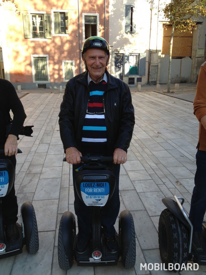 Continuons avec Mobilboard La Rochelle et un participant de 84 ans. Monsieur avait toujours dit à sa femme qu’il rêverait de faire du gyropode Segway !