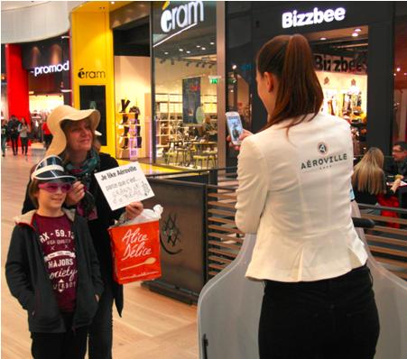 Et c’est ainsi que les animatrices ont sillonné les allées du centre commercial. Sur leur gyropode elles étaient équipés de tablette tactile et d’appareil photos. Le but était alors de faire gagner des cartes cadeaux aux clients. En effet, en laissant leurs coordonnées et en posant devant les animatrices, les clients avaient la possibilité de remporter plusieurs cartes cadeaux à utiliser chez les différents commerçants du centre.