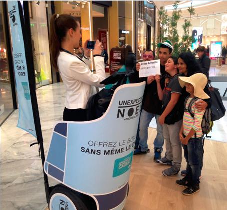 Pour finir, cette opération a mis en évidence la complémentarité entre l’aspect street marketing et digital d’une opération de communication. À l’aide des gyropodes, les animatrices vont au contact des clients pour susciter l’envie de participer. Et, une fois la photo prise et les coordonnées récupérées, elle est partagée sur les réseaux sociaux. Une très belle réalisation qui a enchanté les participants et permis de fidéliser bon nombre de clients !