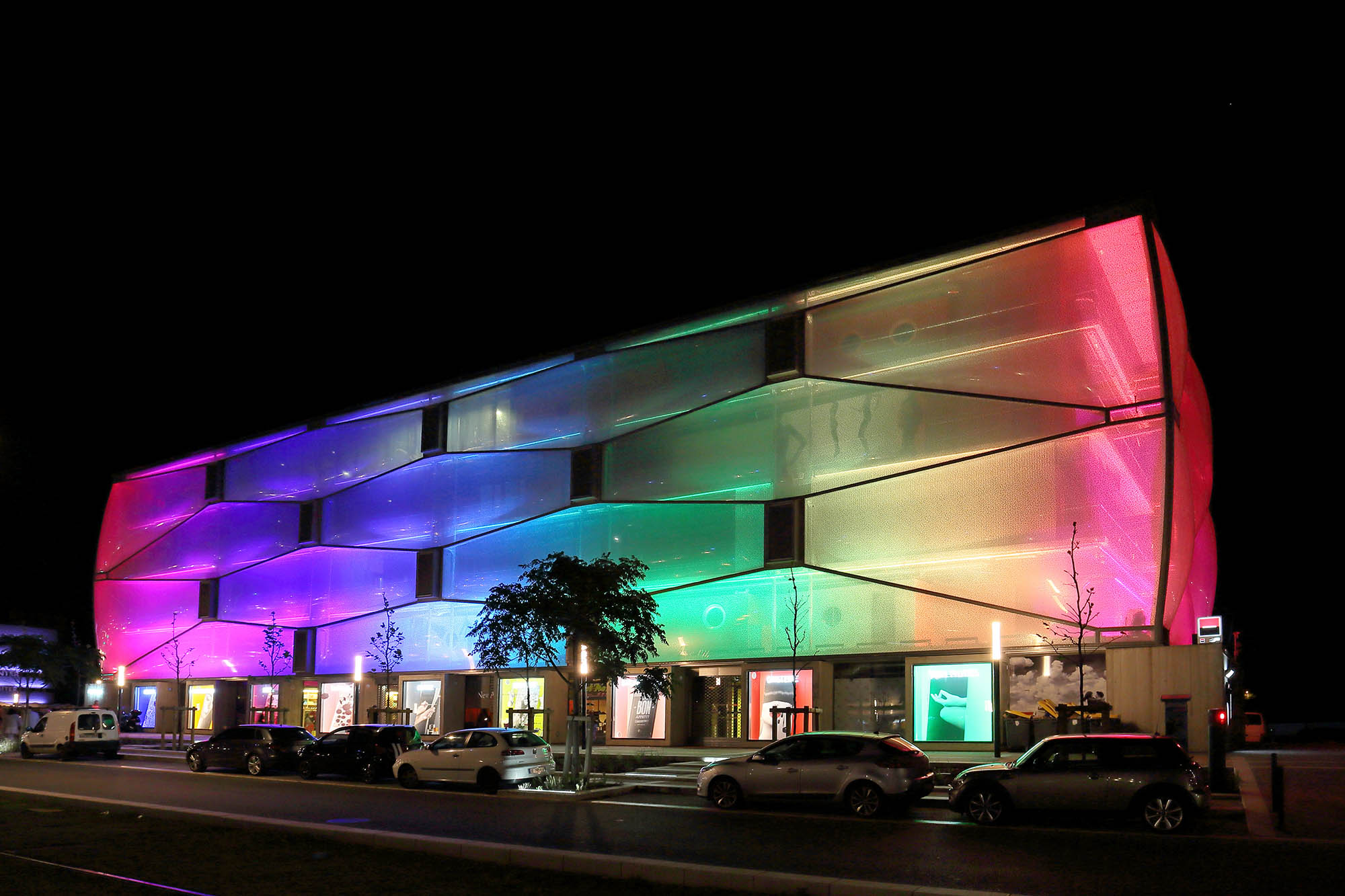 Un drôle de bâtiment, qui change de couleur, trône à quelques mètres du miroir d’eau : le Nuage. Imaginé par l’artiste français Philippe Starck, le bâtiment abrite un restaurant et une salle de remise en forme. C’est l’une des premières constructions gonflable en Europe. Autour de la structure en béton, une membrane en forme de bulle est gonflée d’air pulsé à 700 bars. « Une feuille d’éthylène d’un dixième de millimètre d’épaisseur tendue par ce qui fait le souffle même de la vie : le vent, l’air » dira Philippe Starck.